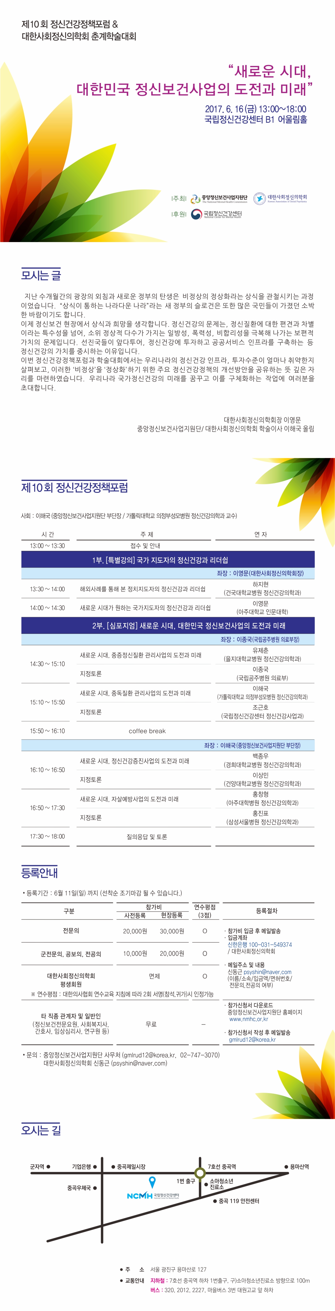 * 행사명: 제10회 정신건강정책포럼 &대한사회정신의학회 춘계학술대회