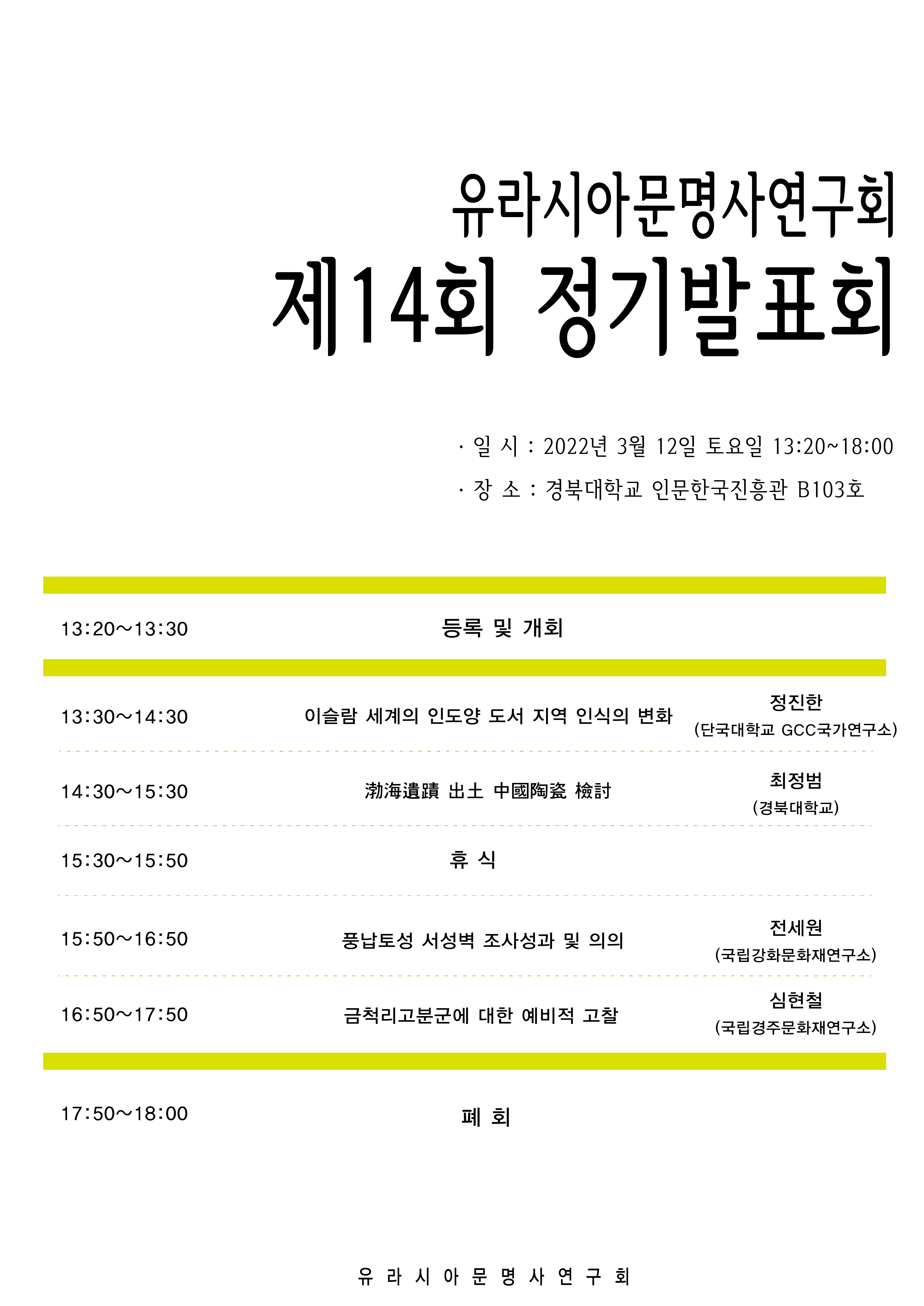 2022년 3월 12일 토요일, 〈유라시아문명사연구회 제14회 정기발표회〉를 개최하고자 합니다.