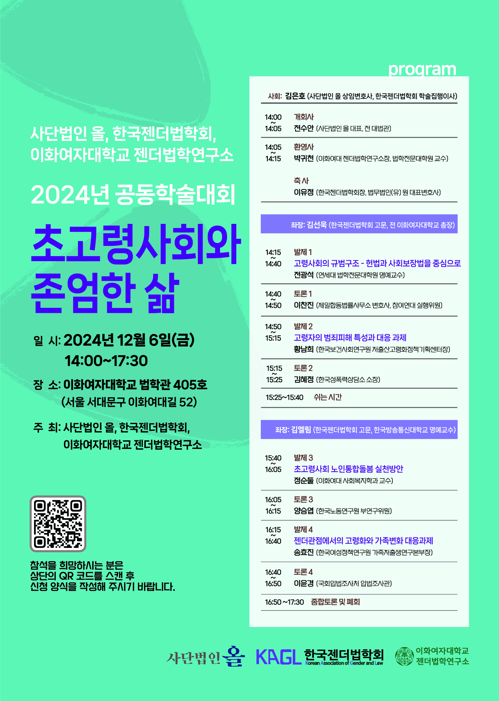 (24/12/6) [한국젠더법학회] 공동학술대회 "초고령사회와 존엄한 삶" 안내