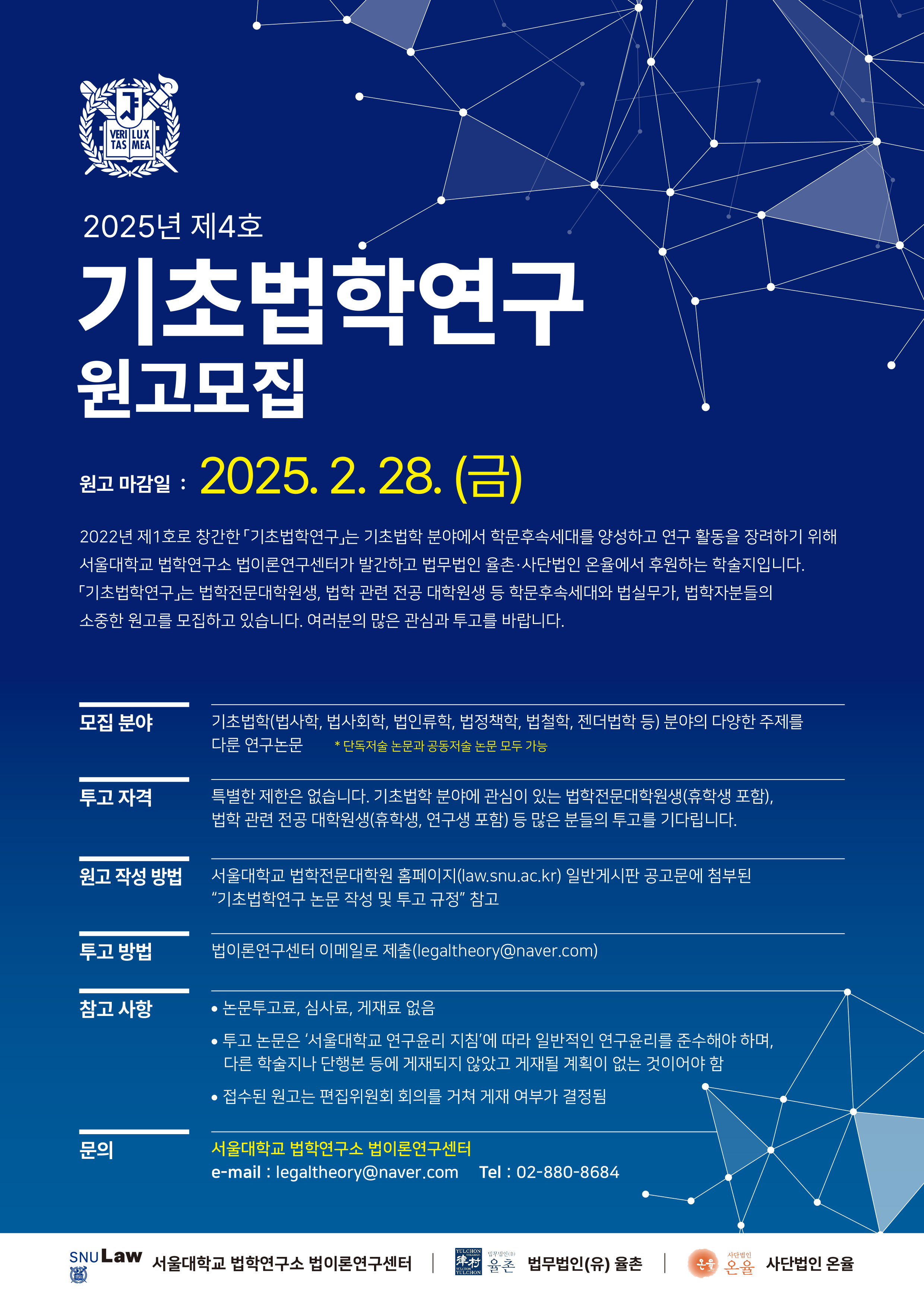[서울대 법이론연구센터] 『기초법학연구』 2025년 제4호 원고 모집 (~2.28)