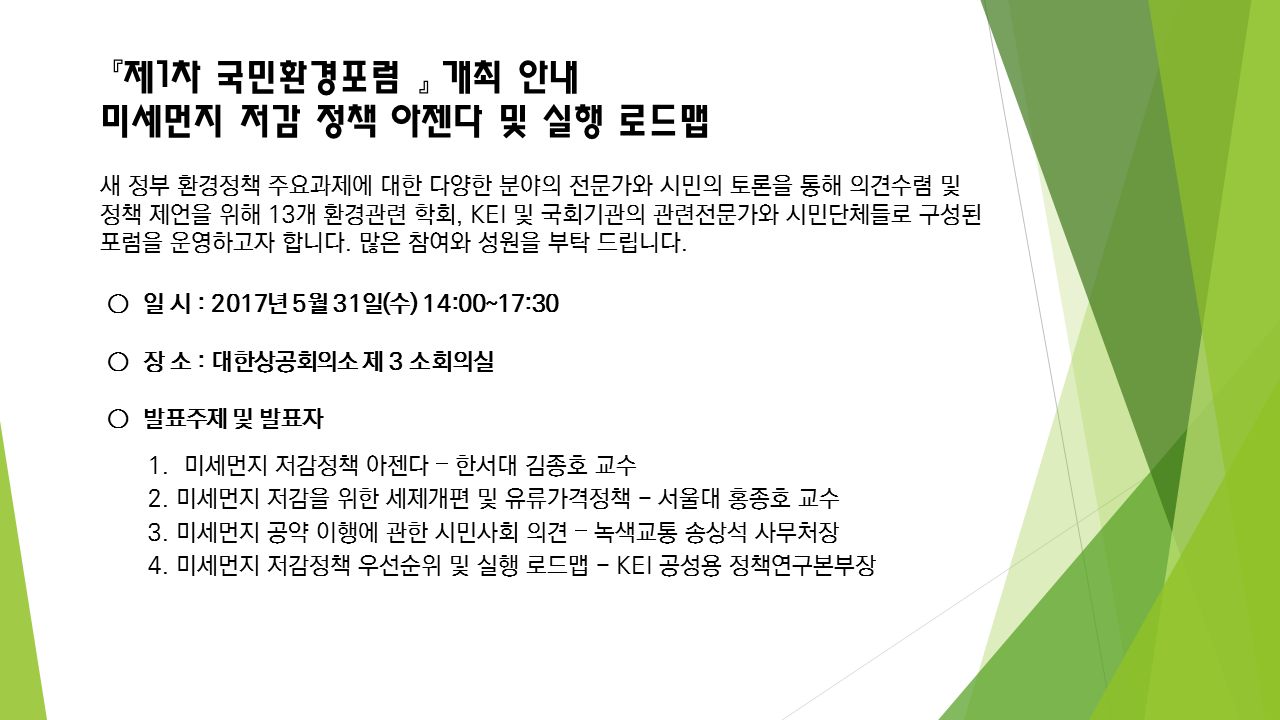 제1차「국민환경포럼」미세먼지 저감 정책 아젠다 및 실행 로드맵