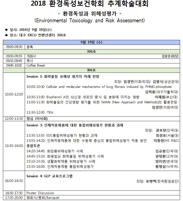 환경독성보건학회 사무국 (koseht@gmail.com, 02-743-3745)