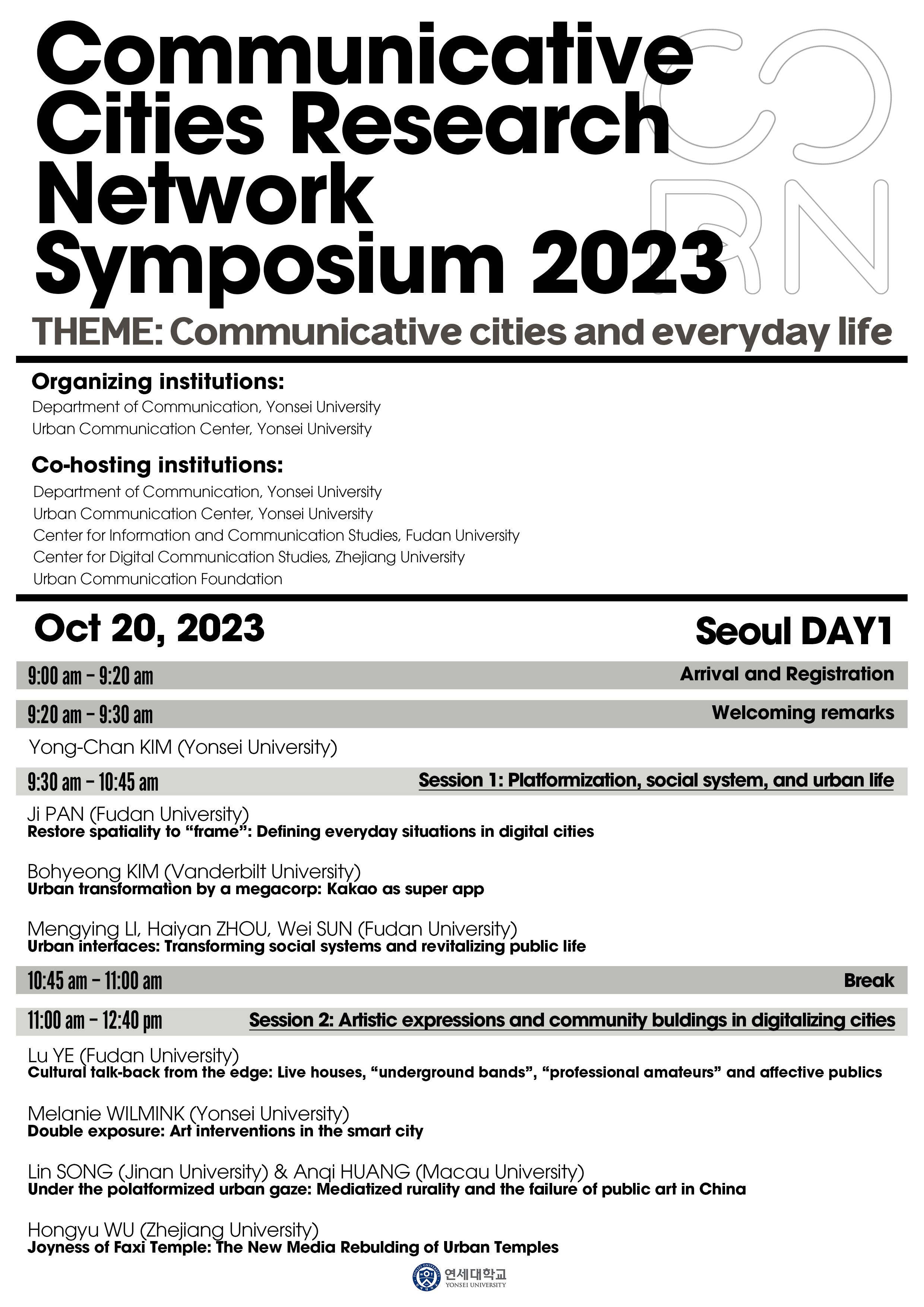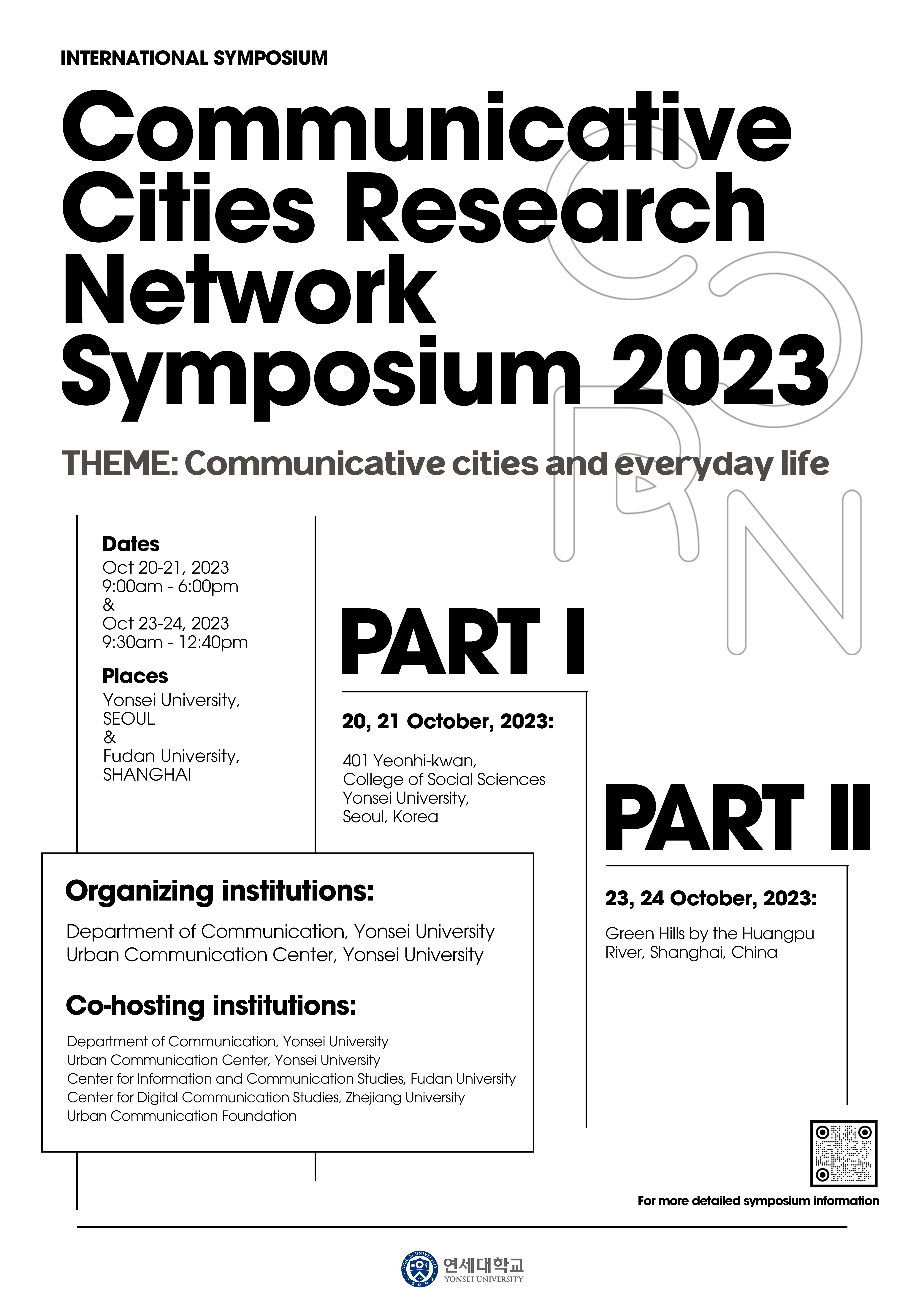 2. 한국언론정보학회는 연세대학교 언론홍보영상학부와 도시커뮤니케이션센터가 개최하는 국제 심포지움 <Communicative Cities Research Network Symposium 2023>을 안내하오니, 회원 여러분의 많은 관심과 참여를 부탁드립니다.