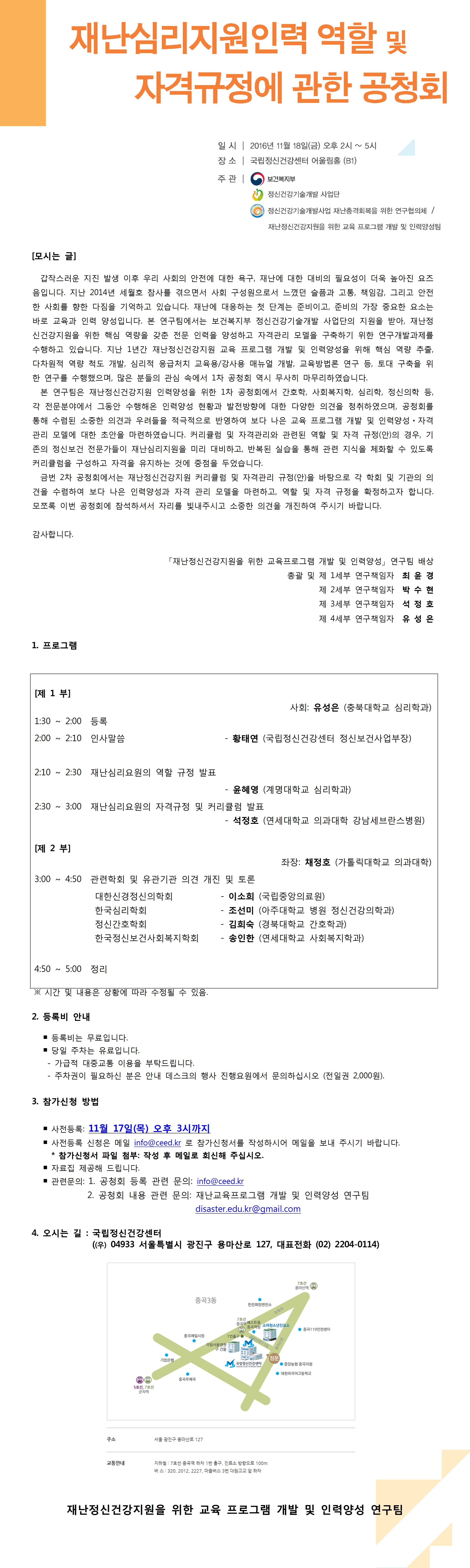 재난심리지원인력 역할 및 자격규정에 관한 공청회 안내