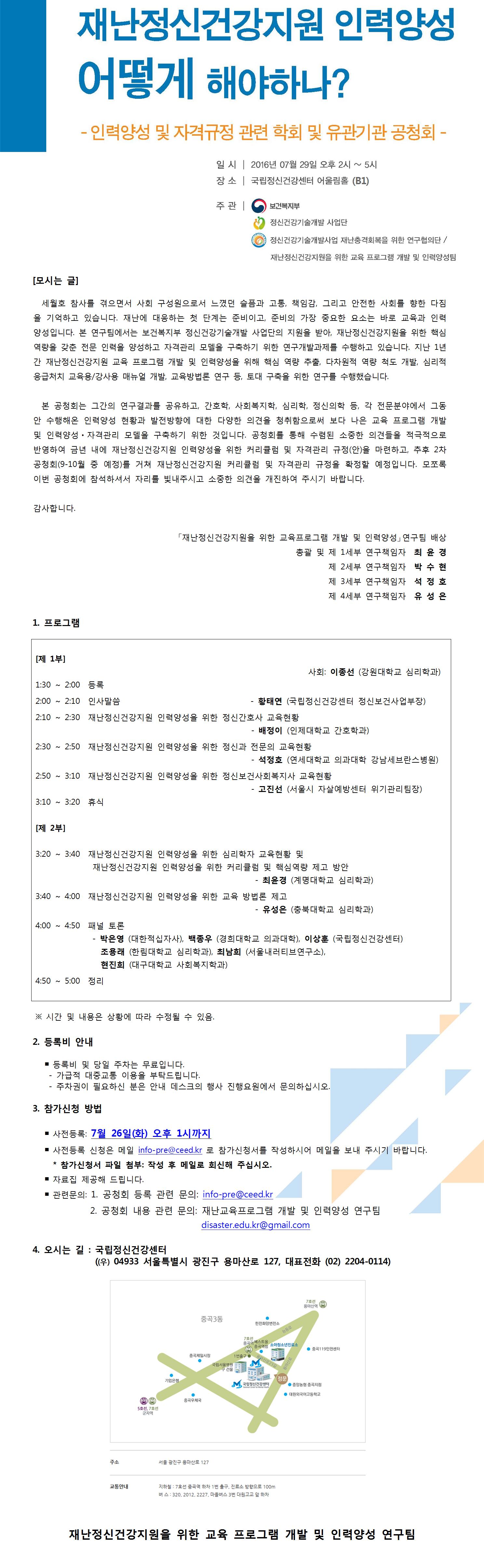 [정신건강기술개발사업] 인력양성 및 자격규정 관련 학회 및 유관기관 공청회