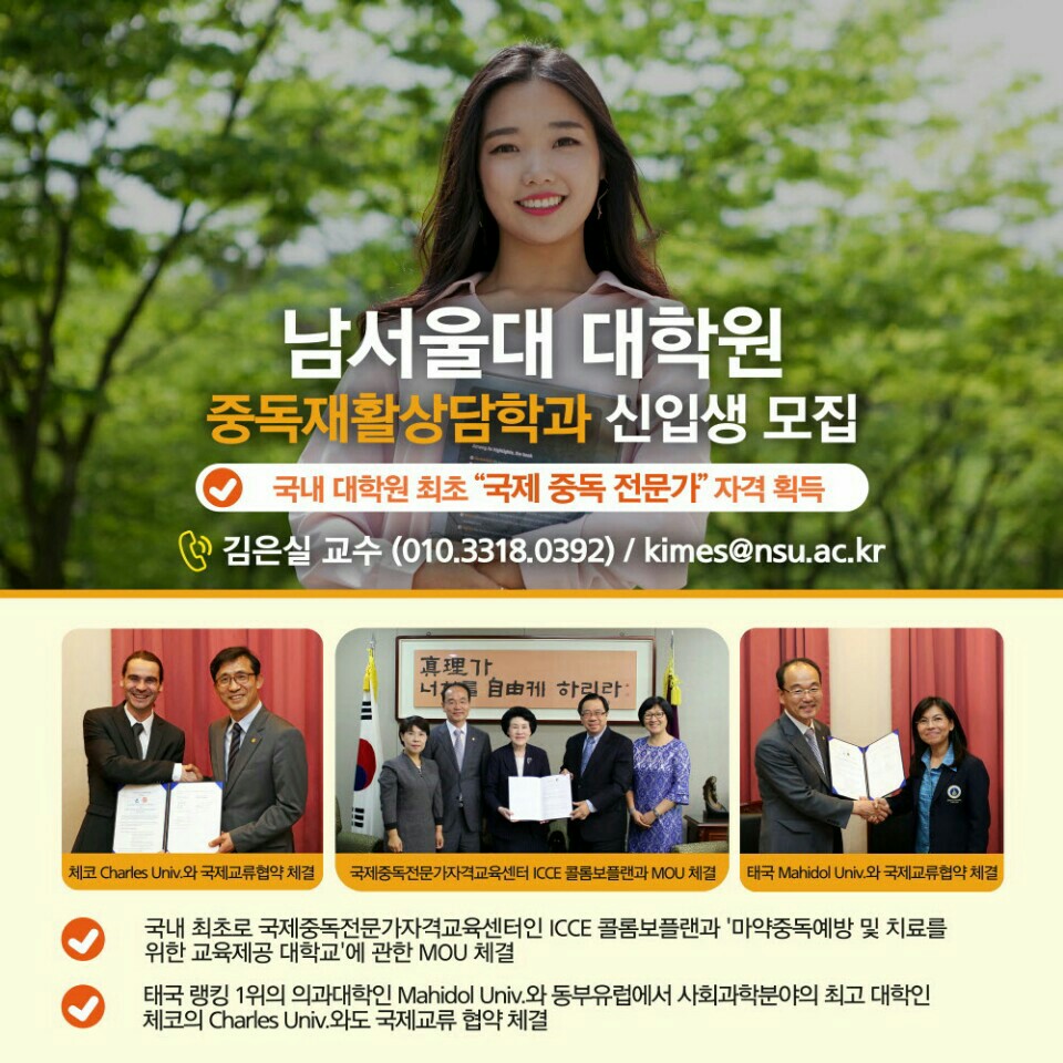 남서울대학교 중독재활상담학과 대학원 신입생모집