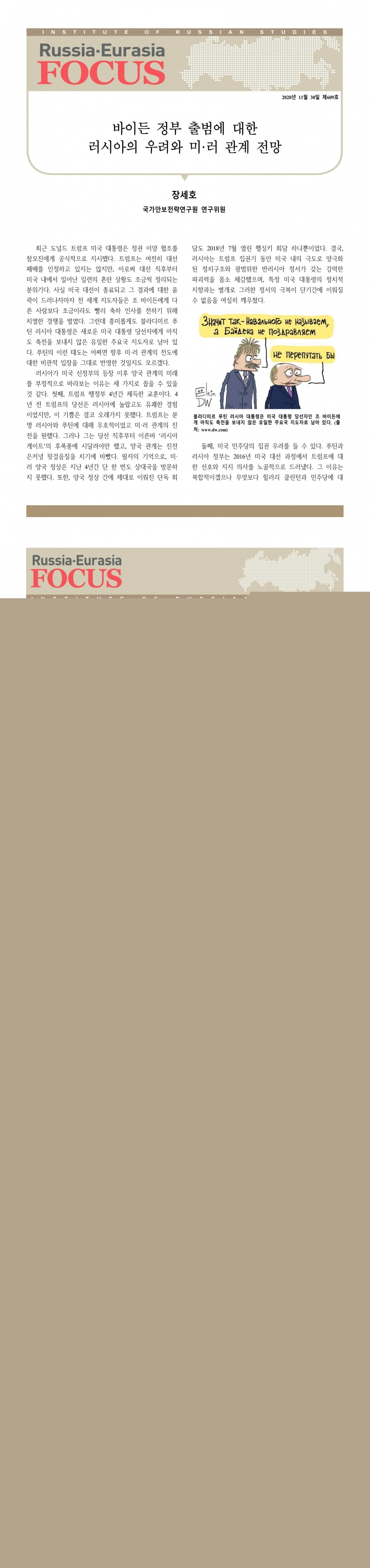 제609호 바이든 정부 출범에 대한 러시아의 우려와 미·러 관계 전망
