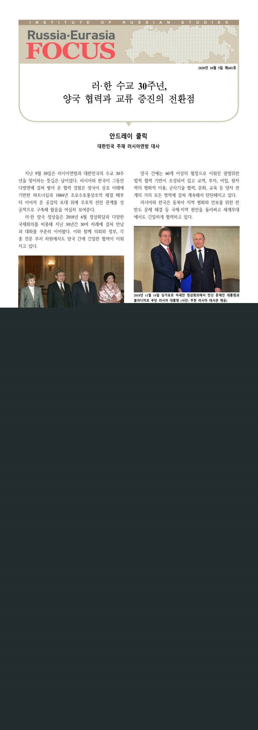제600호 한·러 수교 30주년, 양국 관계 발전의 새로운 도약대