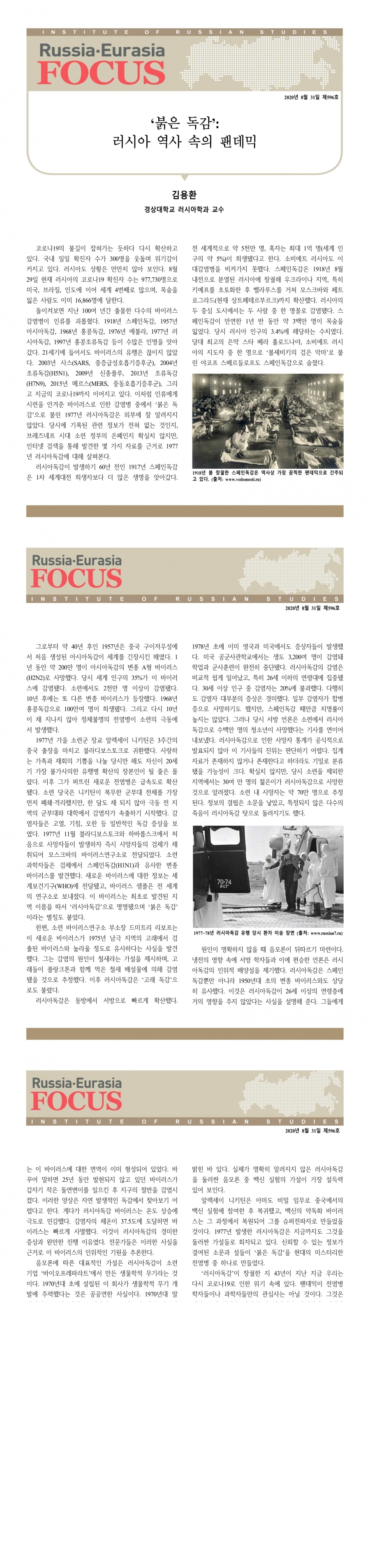 제596호 ‘붉은 독감’: 러시아 역사 속의 팬데믹
