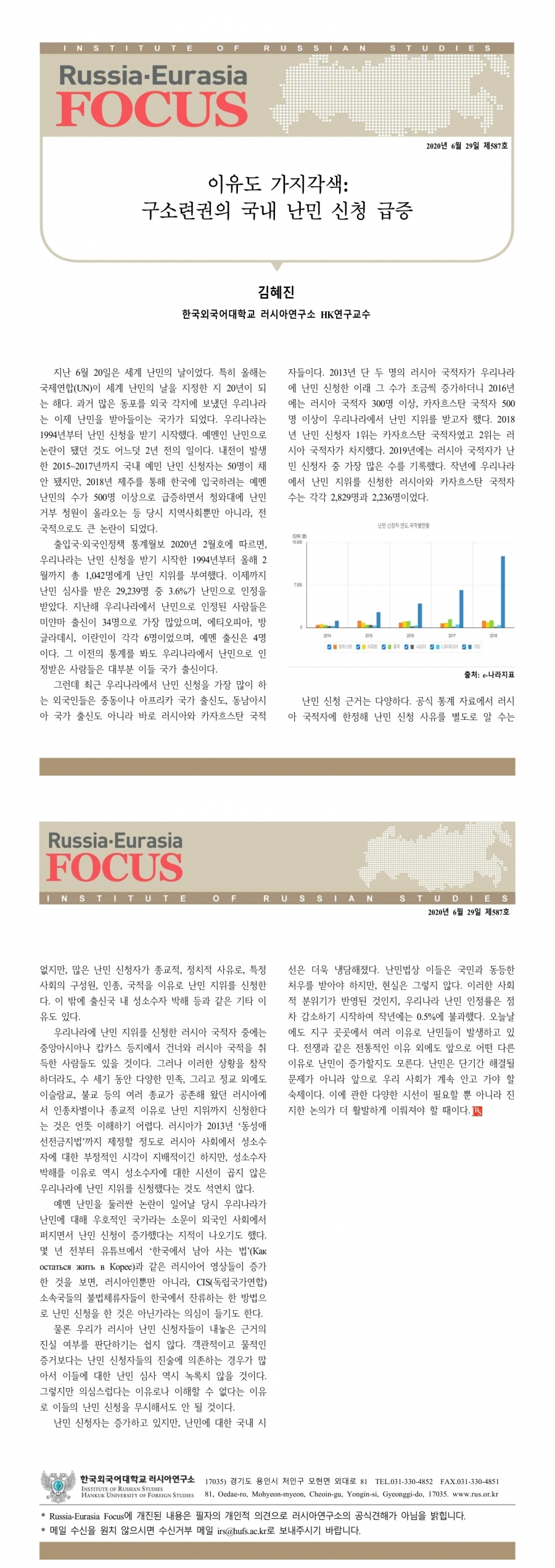 제587호 이유도 가지각색: 구소련권의 국내 난민 신청 급증
