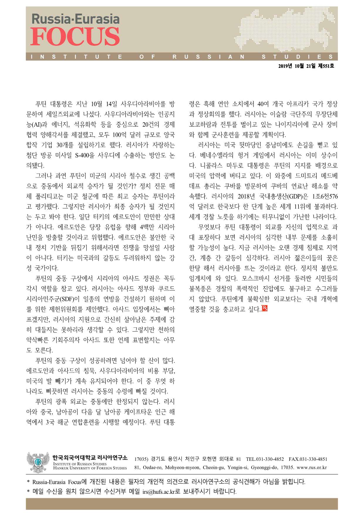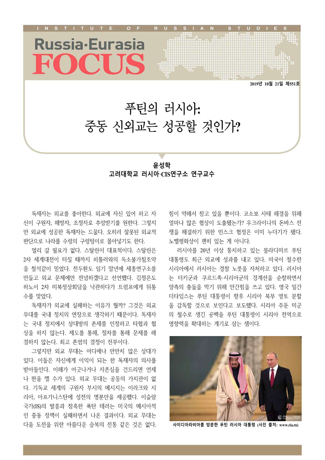 제551호 푸틴의 러시아: 중동 신외교는 성공할 것인가?