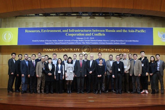 러시아연구소는 2019 2 21-22일 양일에 걸쳐 우리학교 미네르바 컴플렉스 국제회의실과 명동 토마스호텔에서 독일 막스베버재단과 한국연구재단의 후원으로 독일역사연구소(모스크바 지부), 독일 루드비그-막시밀리안스대학교와 공동으로 'Resources, Environment, and Infrastructures between Russia and the Asia-Pacific: Cooperation and Conflict' 라는 주제로 인문한국(HK) 국제학술회의를 개최했다.