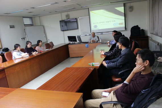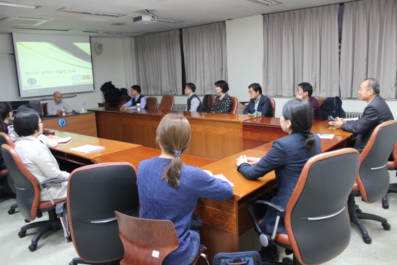 한국외국어대학교 러시아연구소 인문한국(HK) 연구사업단은 러시아연방 인문공간 연구의 일환으로 지난 10월 27일 금요일 서울캠퍼스 국제관 203호에서 러시아 상트페테르부르크국립대학교 동방학부 한국학과 교수이자 학제간한국학연구소 소장인 세르게이 쿠르바노프 교수를 초청하여 러시아인이 바라보는 러시아 문학이라는 주제로 간담회를 진행했다이 자리에는 한국외대 러시아연구소 연구진과 노어과 학생외부 손님 등 18명이 참석하여 러시아 문학에 관한 쿠르바노프 교수의 견해를 듣고 그에 관해 질의응답 시간을 가졌다.