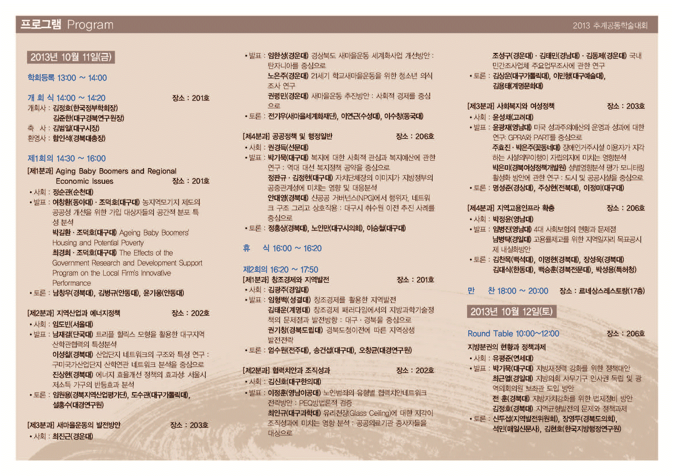 2013년 추계공동학술대회(대구 경북대학교)