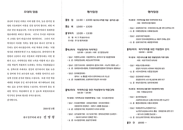 한국정부학회는 8월 25일(수) 대구대학교 정보통신원에서 [지방정치와 지방정부혁신]이라는 주제로 하계학술대회가 개최됩니다.