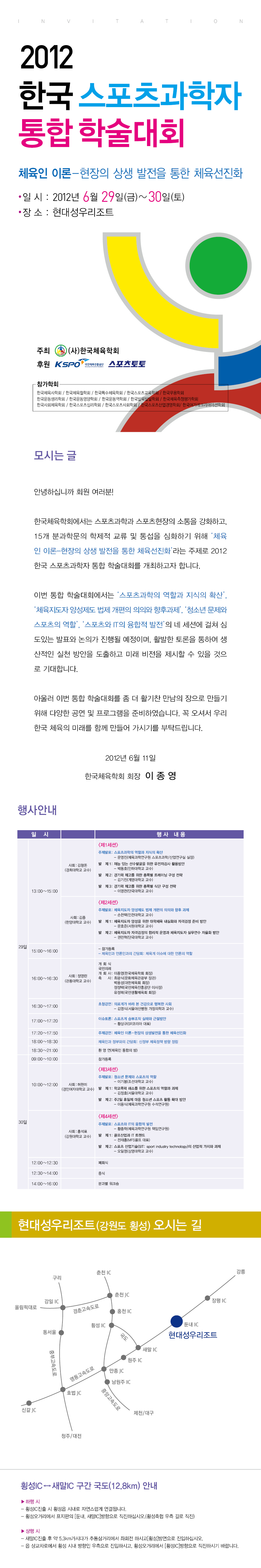 '2012 한국 스포츠과학자 통합 학술대회 개최 및 사전 등록 안내'