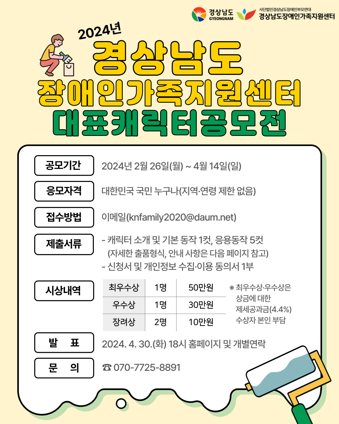 [경상남도] 장애인가족지원센터 캐릭터 공모전 안내