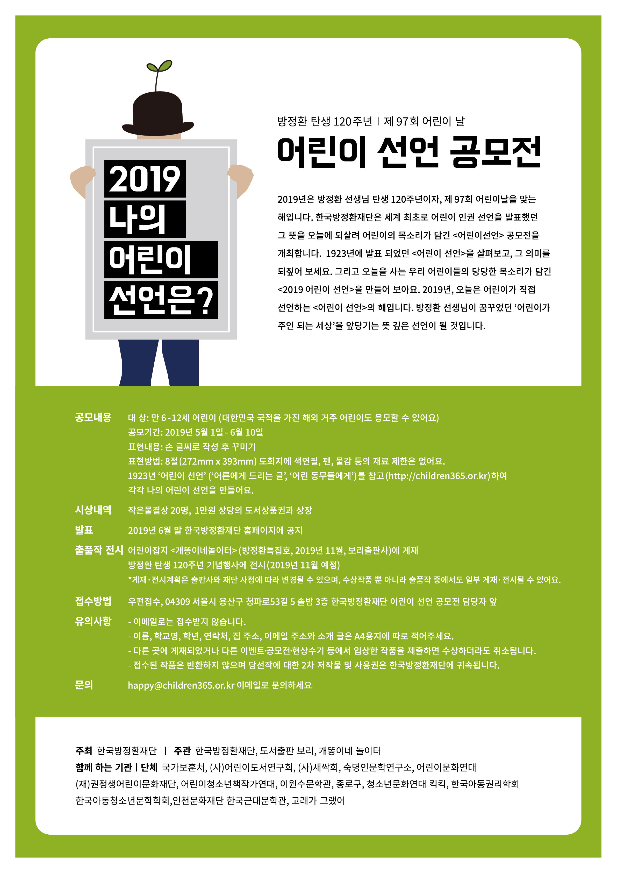 한국방정환재단 실시 방정환 탄생 120주년 공모전 <2019년 어린이선언>