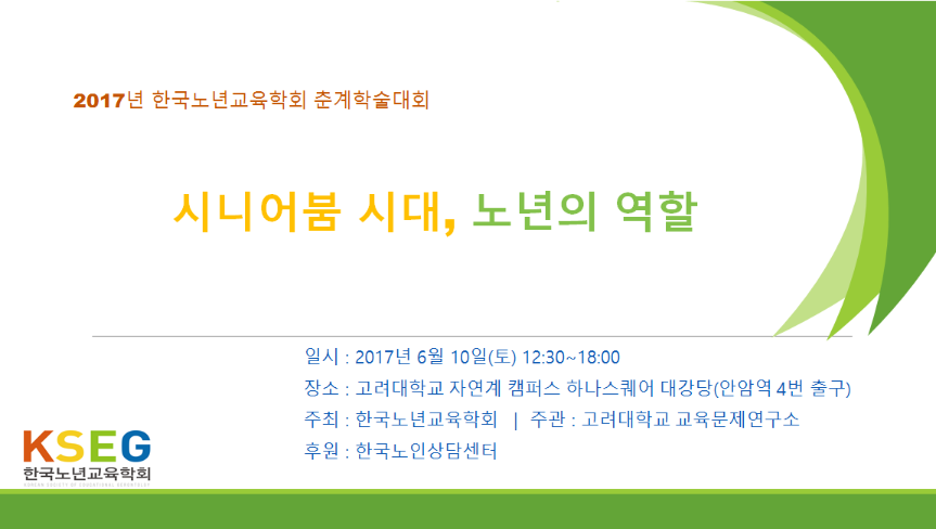 [한국노년교육학회] 2017 춘계학술대회(6/10, 고려대) 사전등록신청 안내