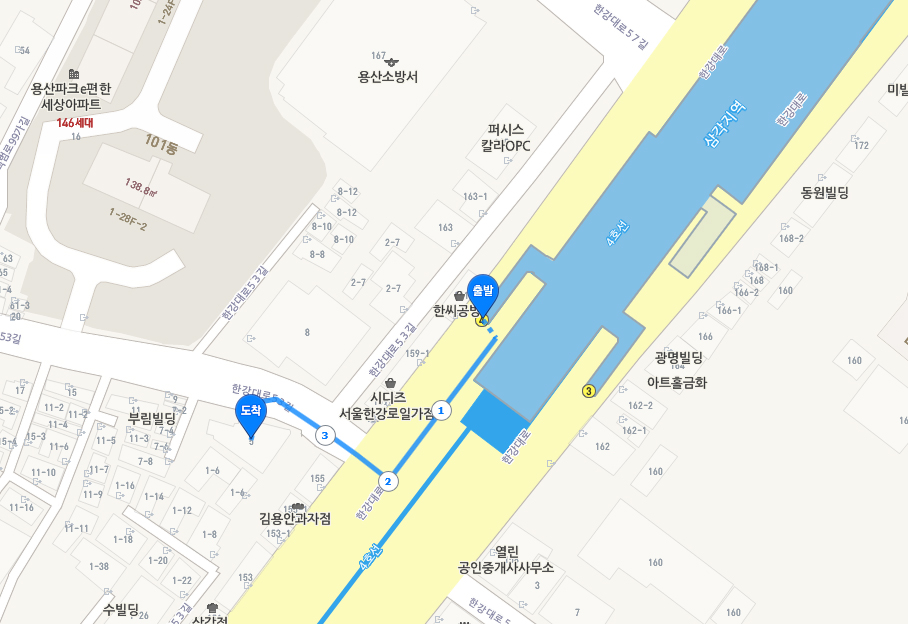 지하철 4호선 / 6호선 4번 출구에서 5분 거리입니다.