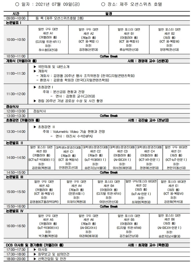 2021년 한국디지털콘텐츠학회 학술발표대회 및 대학생논문경진대회 프로그램 공지 드리니