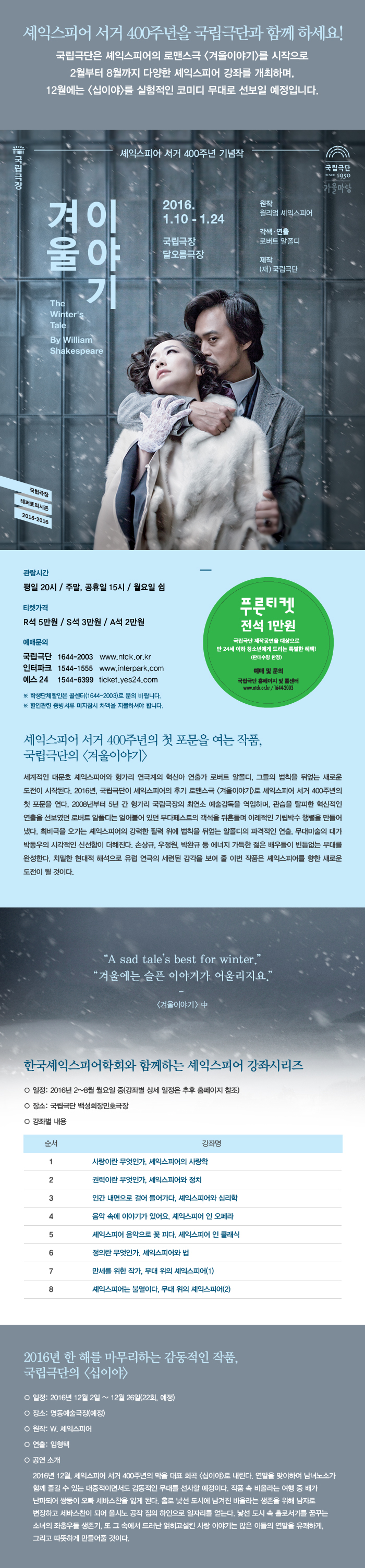 "겨울 이야기" -국립극단 & 셰익스피어 강좌 소개