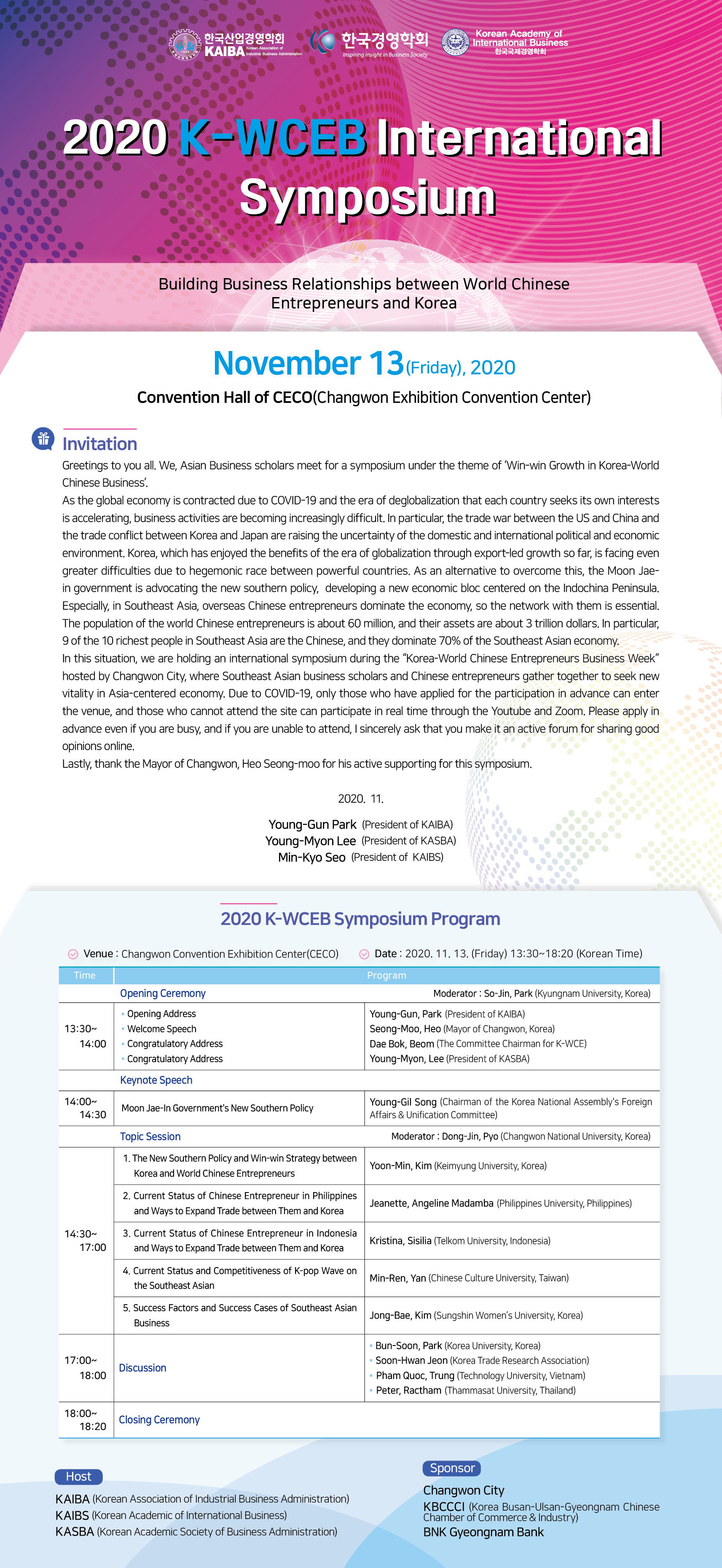 (K-WCEB; Korea-World Chinese Entrepreneurs Business)’ 국제심포지엄을 개최합니다.