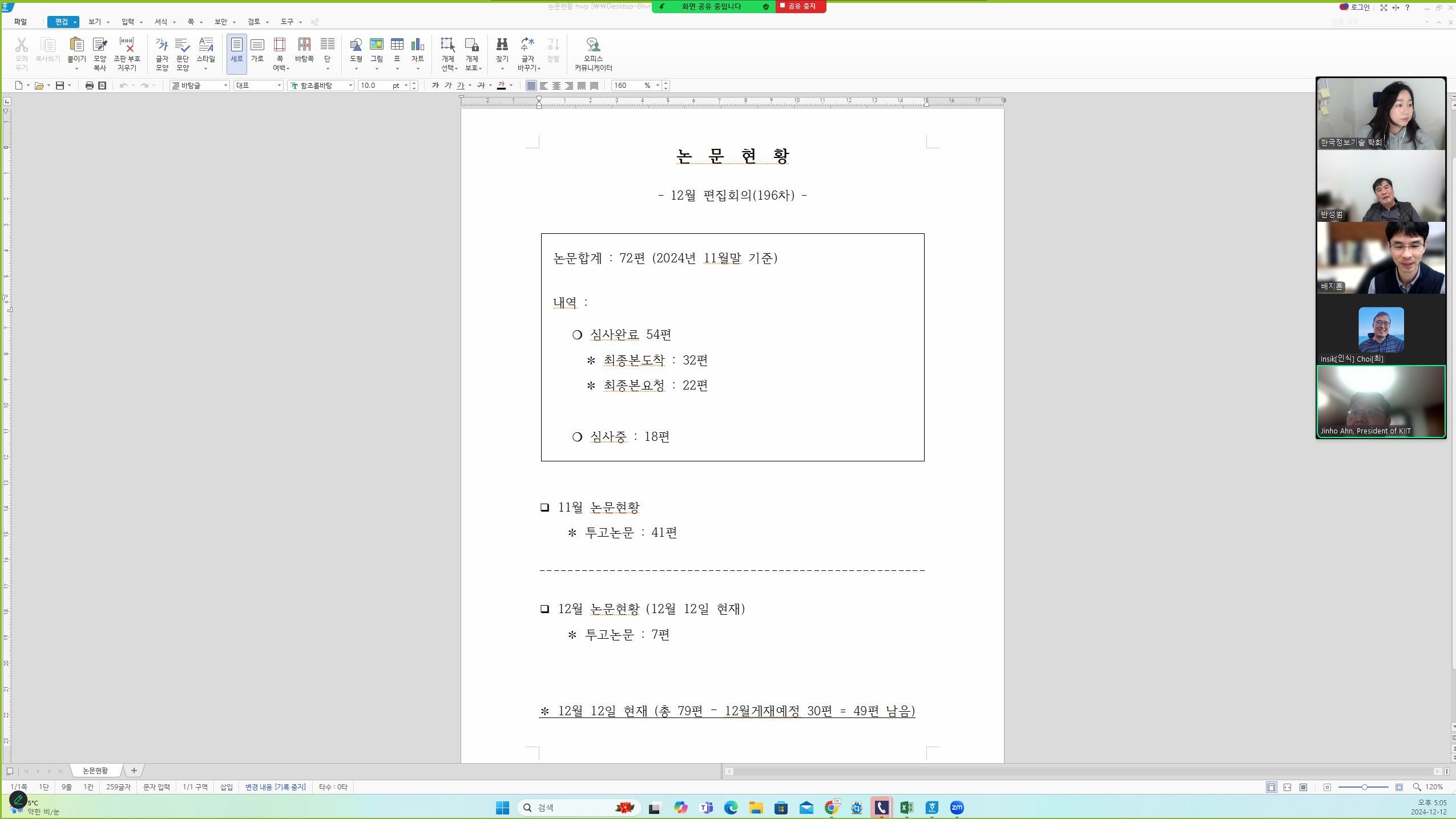 22권 12호 논문지 편집회의 개최