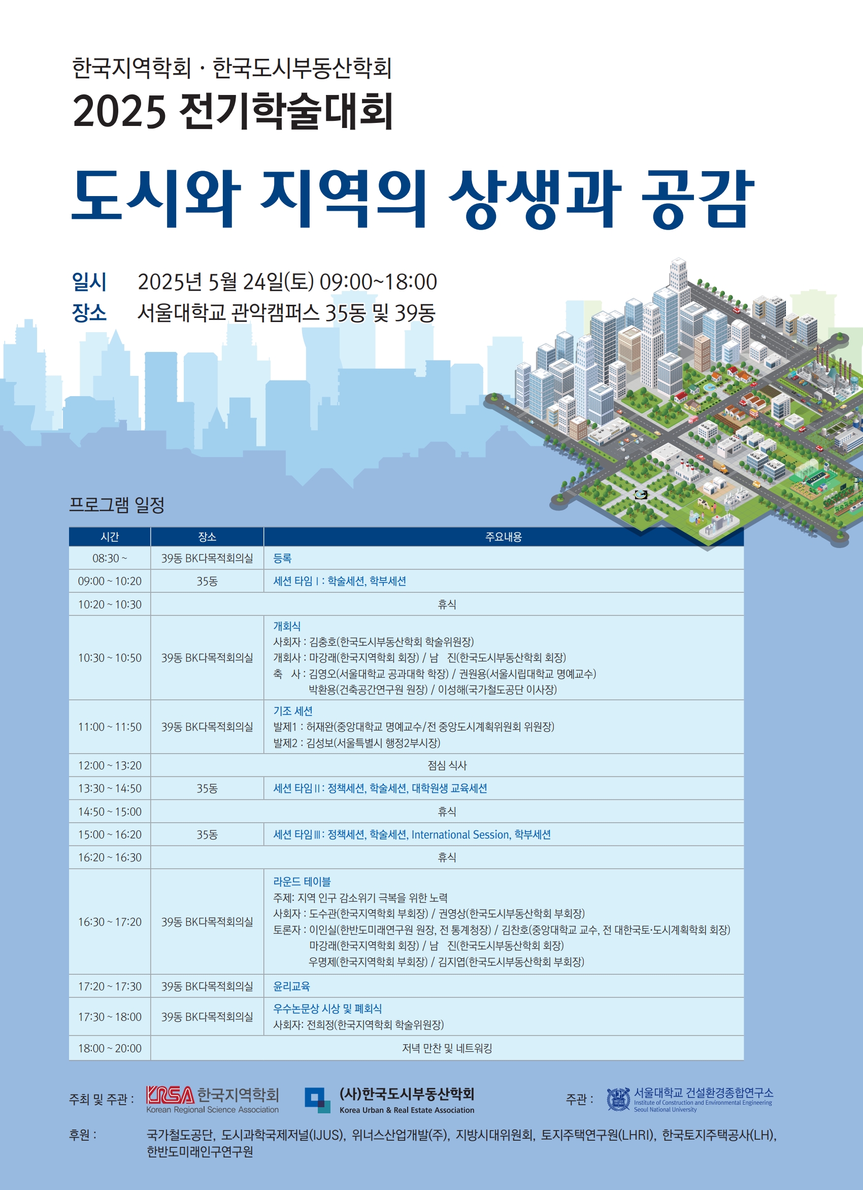 2025년 한국지역학회 & 한국도시부동산학회 전기 공동학술대회 안내
