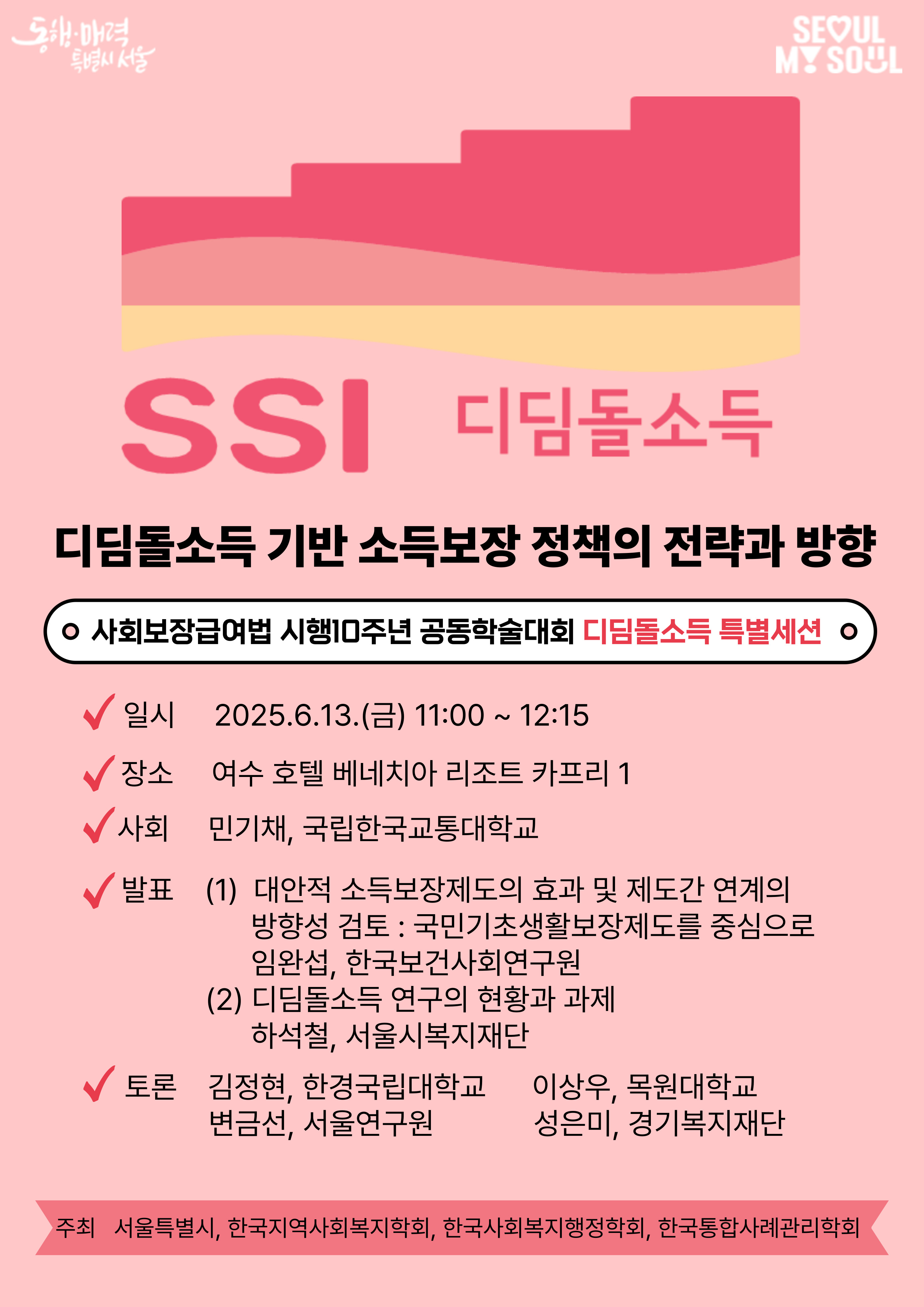 '서울시 디딤돌소득 특별세션'을 6월 13일(금) 여수에서 개최할 예정입니다.