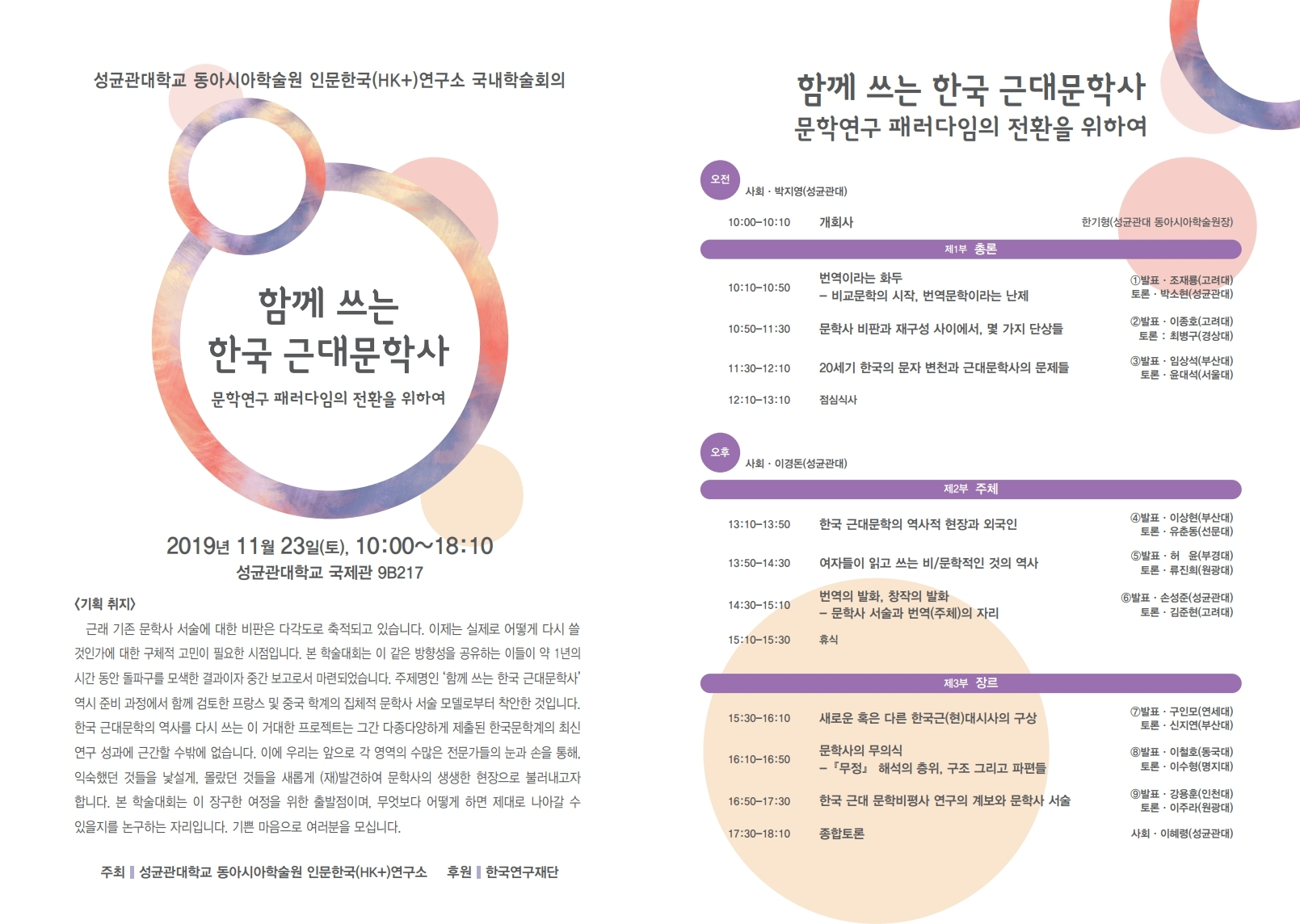 2019 성균관대학교 동아시아학술원 인문한국(HK+)연구소 국내학술회의를 개최합니다.