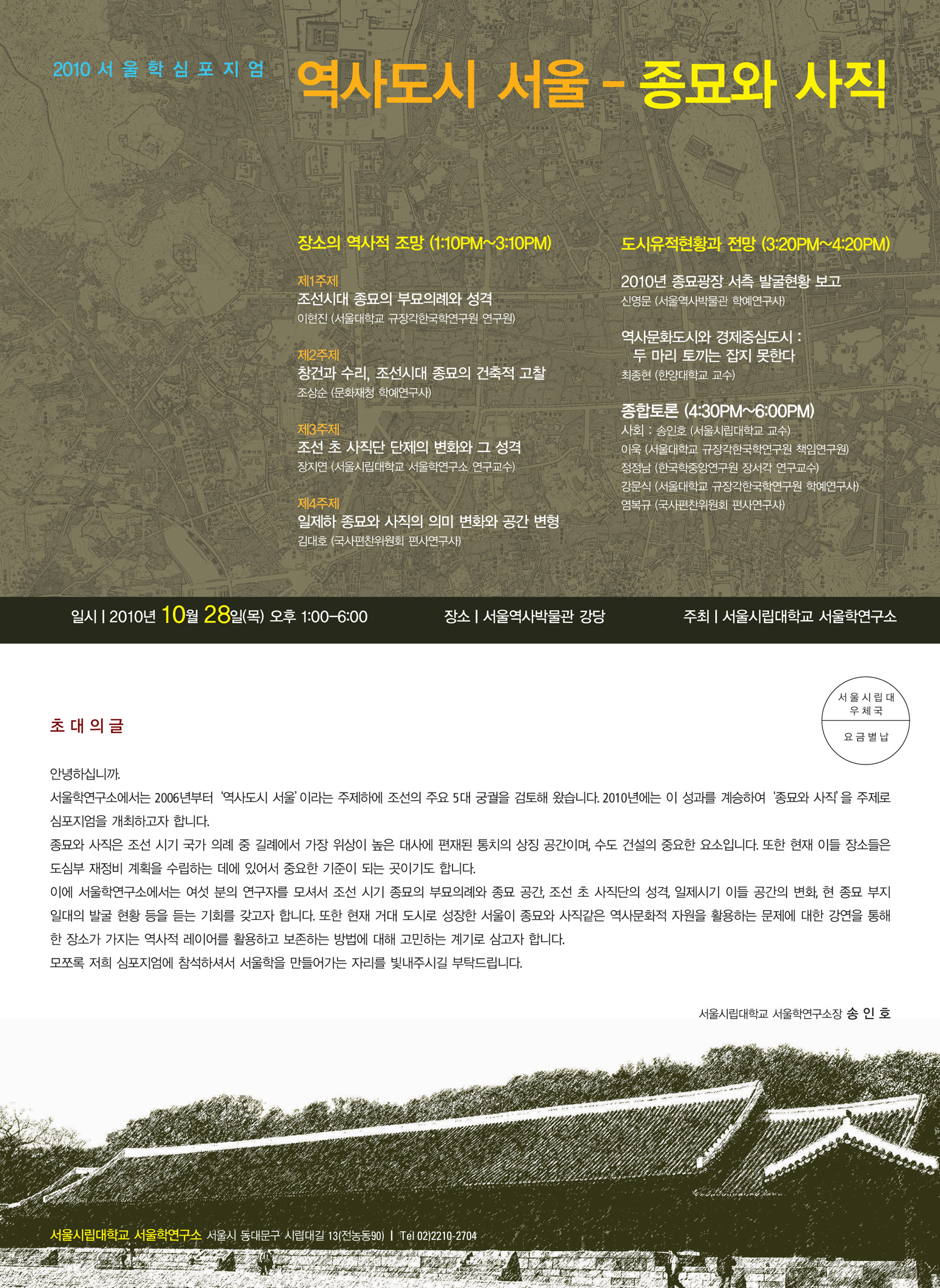 모쪼록 저희 심포지엄 자리에 참석하셔서 서울학을 만들어가는 자