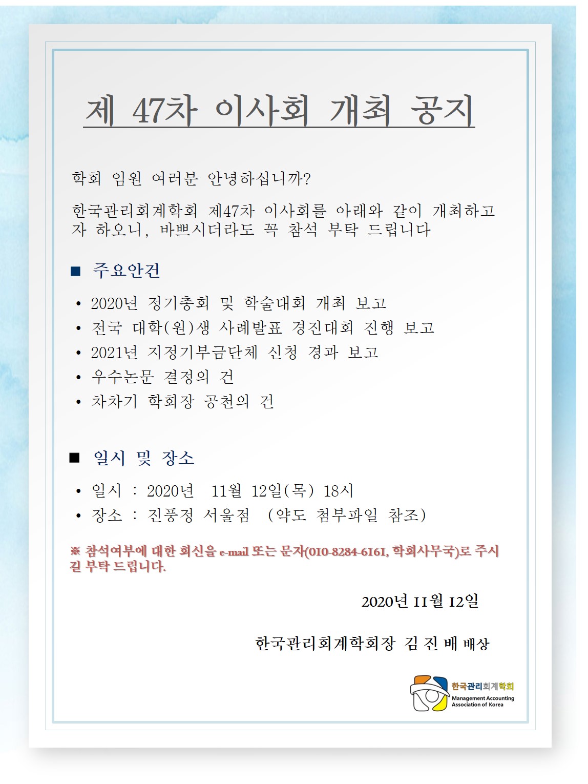 2020년 제47회 이사회 공지