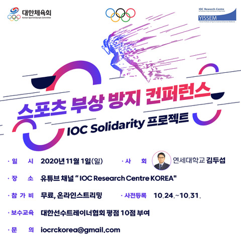 2020년 IOC Solidarity 부상 방지 온라인 컨퍼런스와 관련된 내용을 홍보드리오니