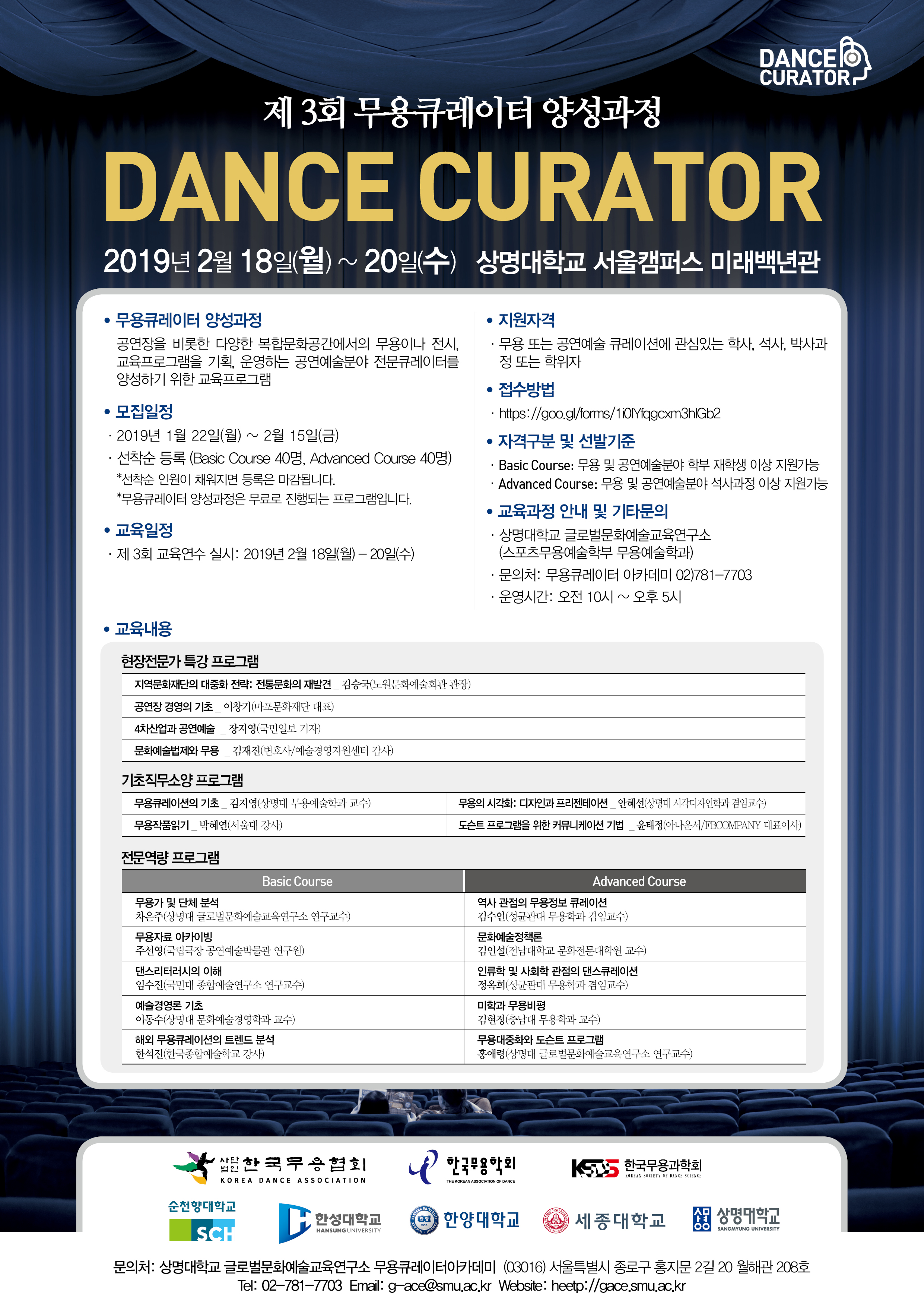 ㅇ 문의처 : 상명대학교 글로벌문화예술교육연구소 무용큐레이터 아카데미 02)781-7705