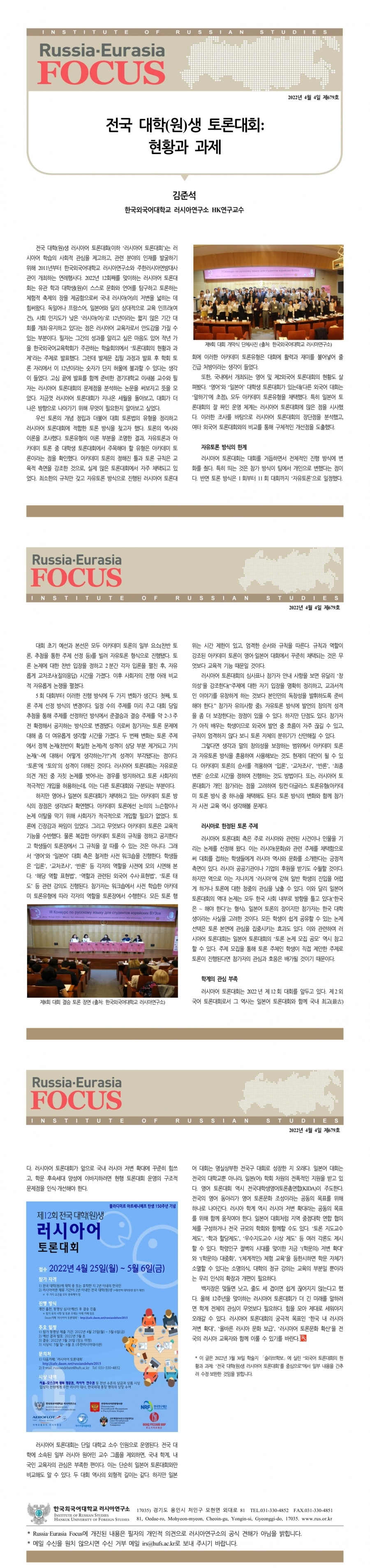 제679호 전국 대학(원)생 러시아어 토론대회: 현황과 과제