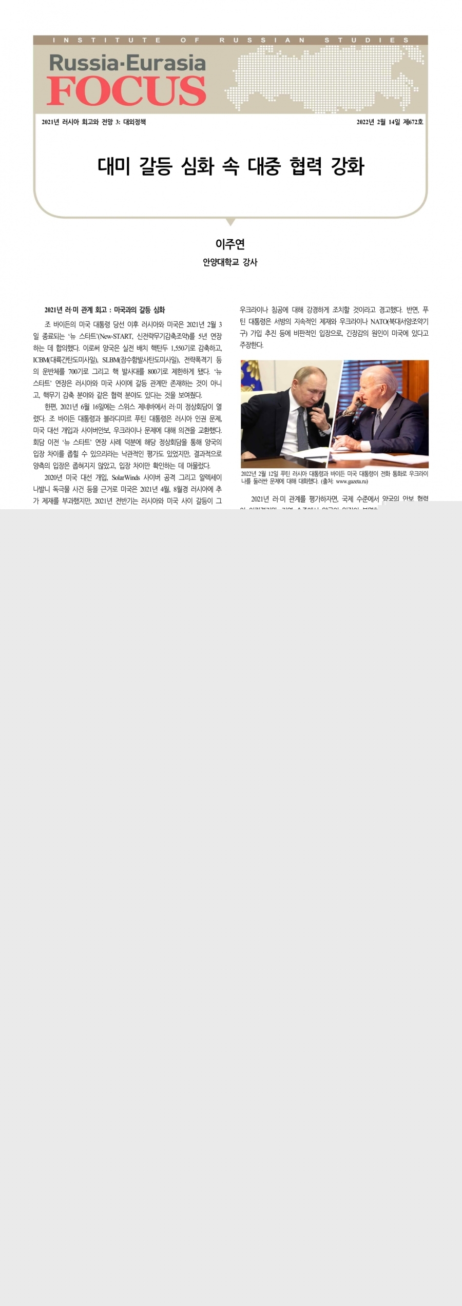 제672호 대미 갈등 심화 속 대중 협력 강화