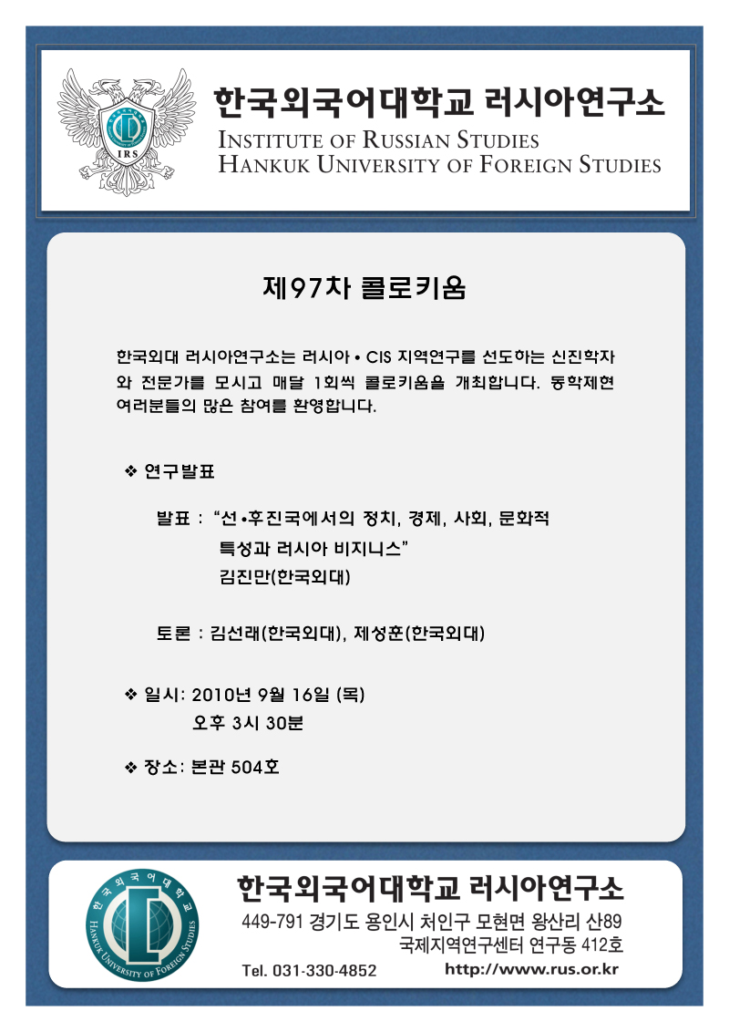 제97차 선 •후진국에서의 정치, 경제, 사회, 문화적 특성과 러시아 비지니스