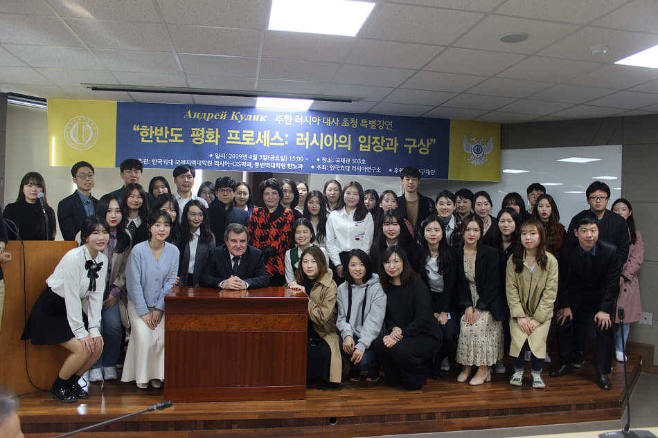 2019년 4월 5일(금) 러시아연구소는 서울캠퍼스 국제관 503호에서 안드레이 쿨릭 주한 러시아대사를 모시고 “한반도 평화 프로세스: 러시아의 입장과 구상”이라는 주제로 초청강연회를 개최했다.
