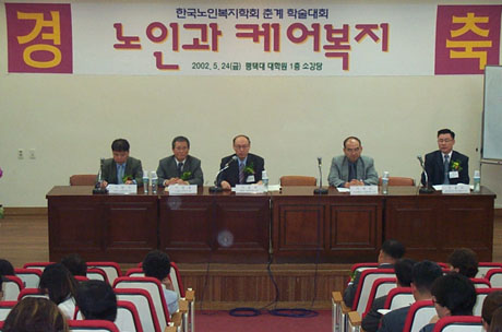 <노인과 케어복지>라는 대주제로 열린 이번 춘계학술대회는 제1부 자유논문 4편, 제2부 지정논문 3편 등 총 7편의 논문이 발표되어 열띤 토론을 벌였으며 특히 <노인과 케어복지>에 대한 <정책과 제도 도입 법안>에 대한 기본적인 틀을 제시한 의의 있는 학술대회 였다는 평가를 받았다. / 촬영자 : 옥재은