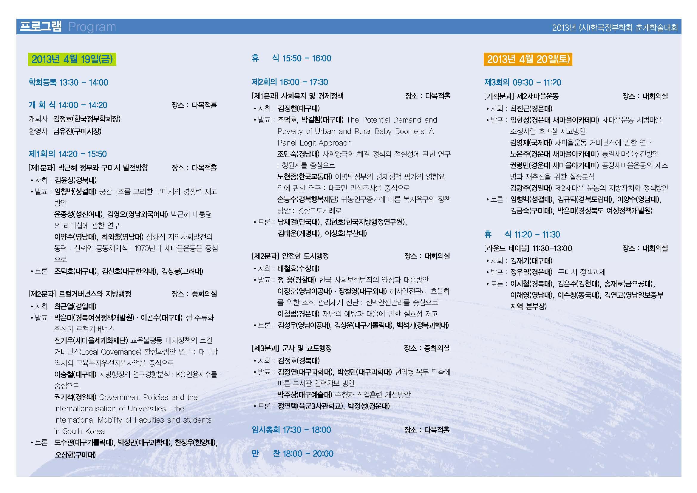 ○일시: 2013년 4월 19일(금) - 20일(토)