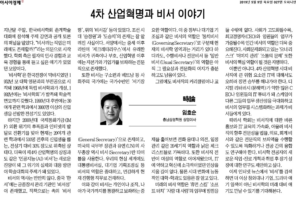 2019.05.09 | 아시아경제 칼럼 | 임호순 충남삼성학원 상임이사