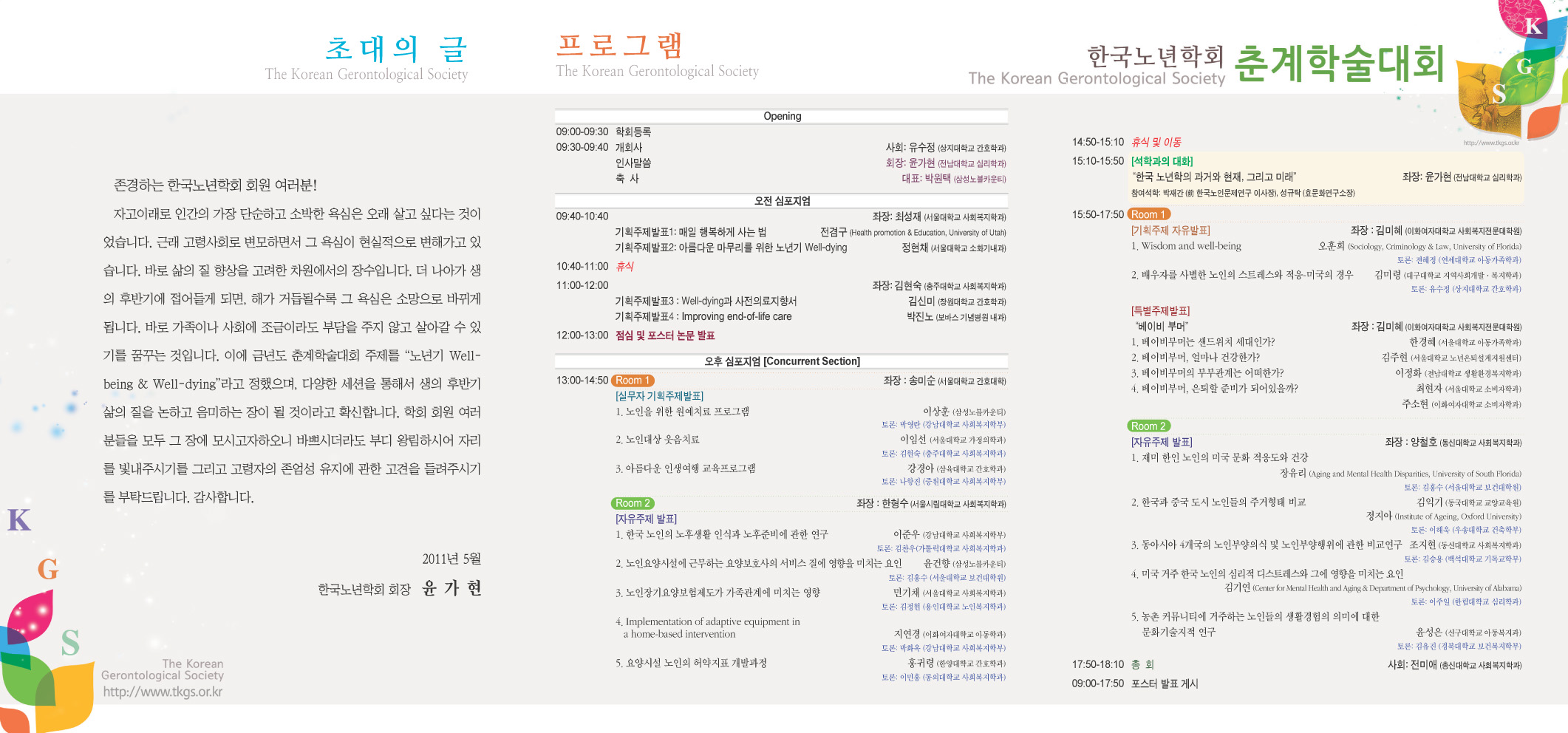 5/27 개최되는 춘계학술대회는 5/13 서울노년학 국제학술심포지움과는 별도의 프로그램임으로 착오없으시길 바랍니다. 그 밖의 문의는 한국노년학회 총무부로 연락주시길 바랍니다.