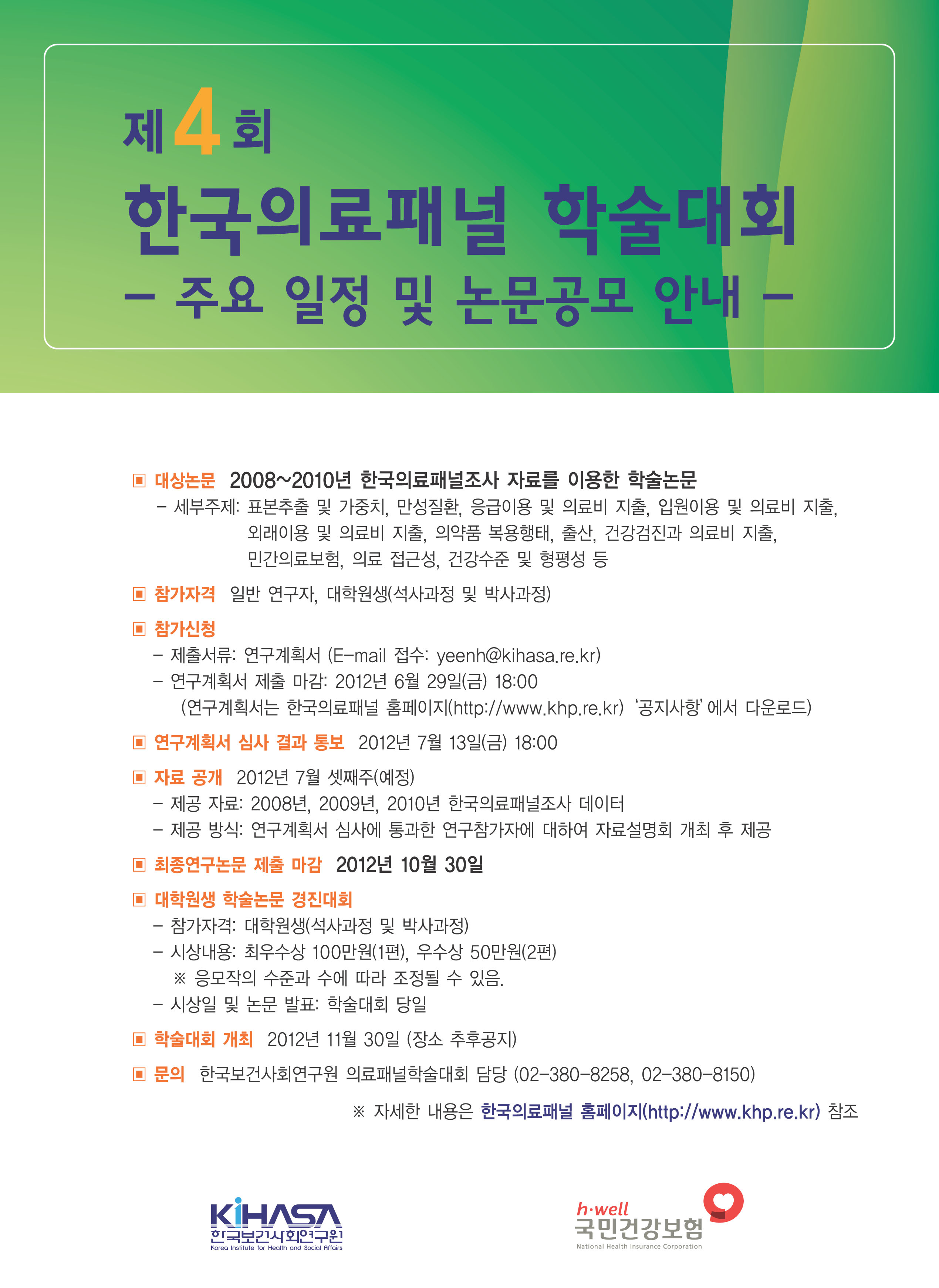 한국의료패널학술대회 일정 및 논문공모 안내 (2012-05-16)