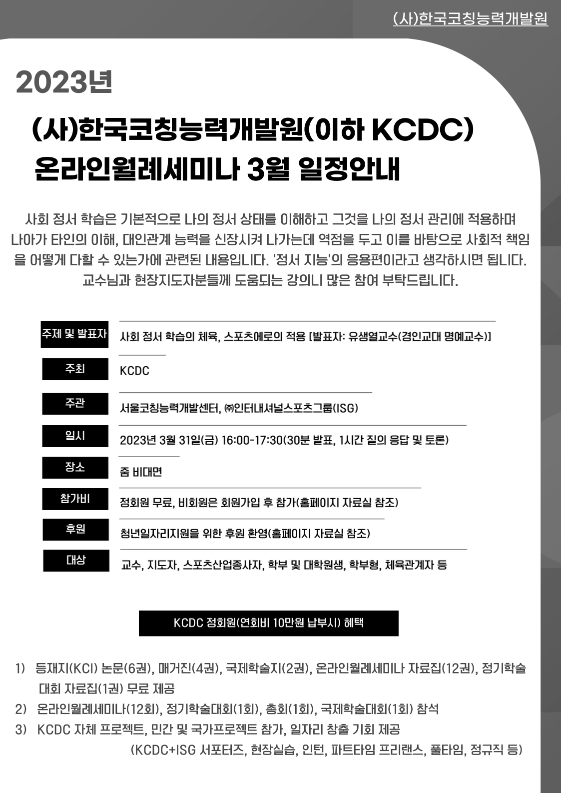 2023년 KCDC 온라인월례세미나 3월 안내
