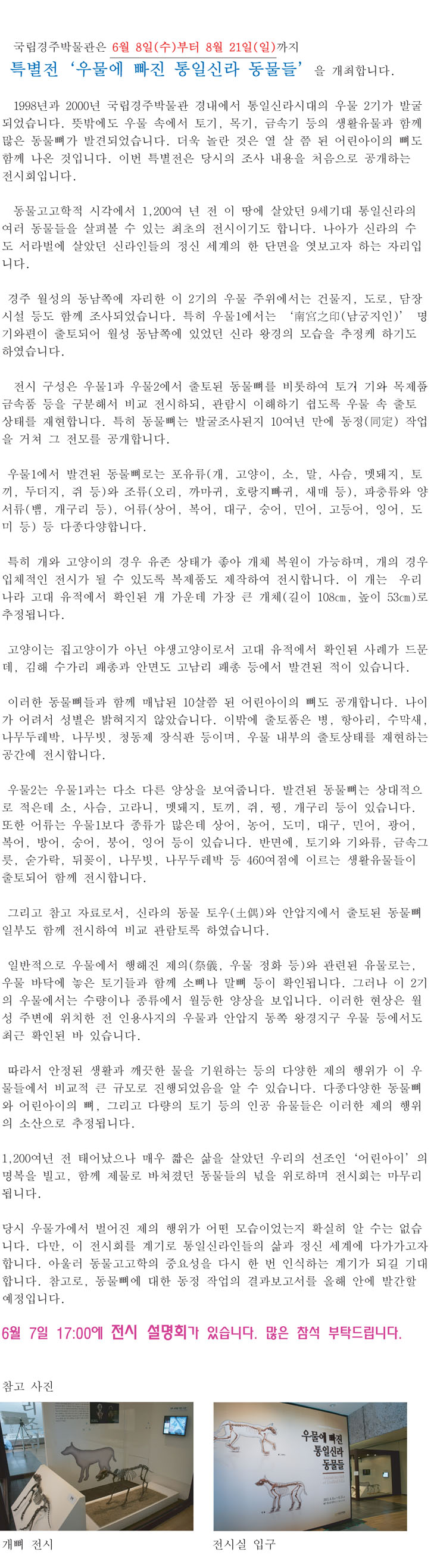 특별전 '우물에 빠진 통일신라 동물들'