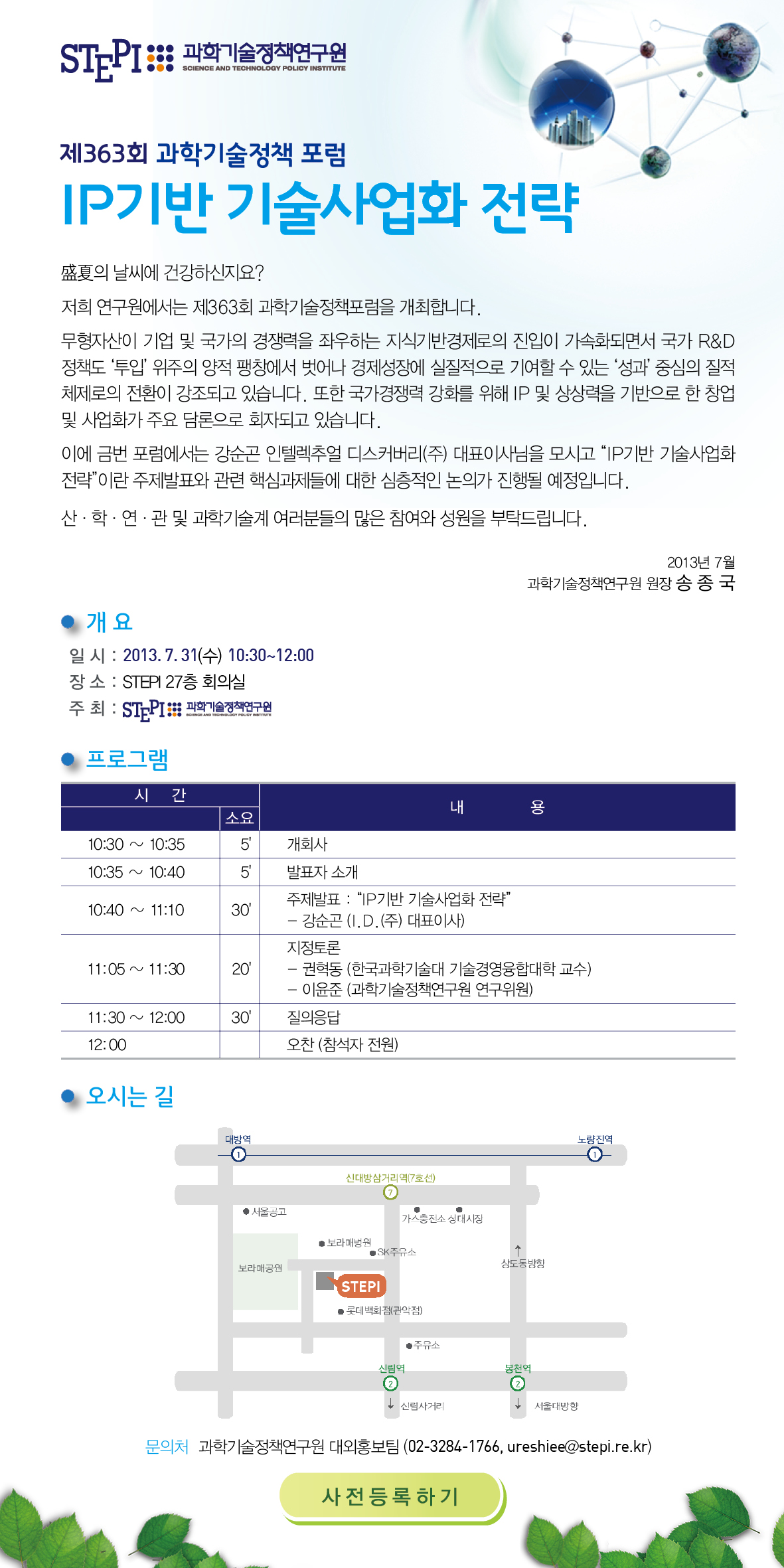 [STEPI] 제363회 과학기술정책포럼 개최-"IP기반 기술사업화 전략"