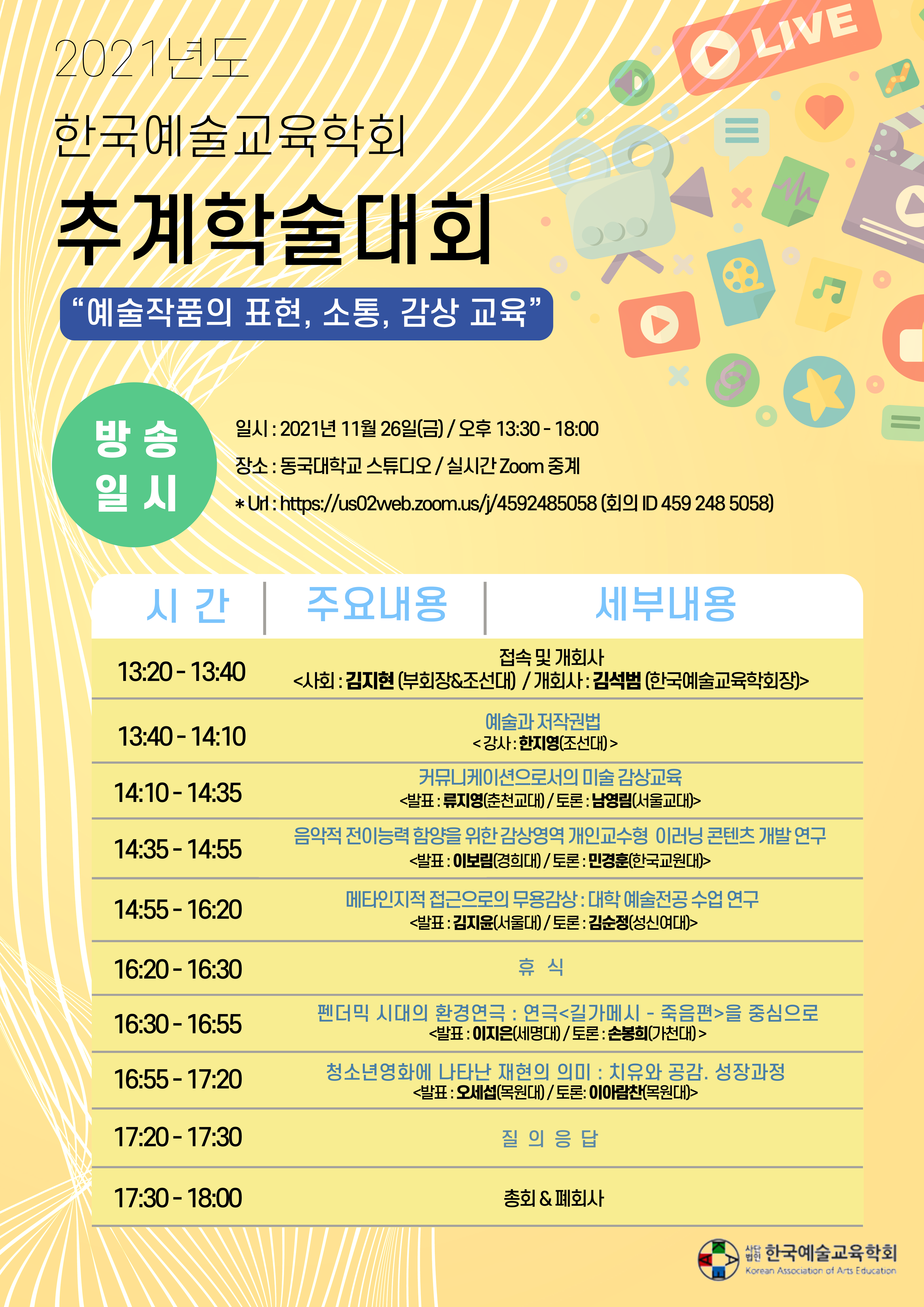 주제: 2021년도 한국예술교육학회 추계학술대회