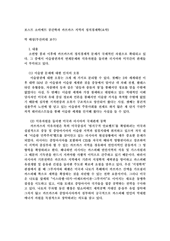 제49차 포스트 소비에트 공간학과 카프카즈 지역의 정치경제학 외 1