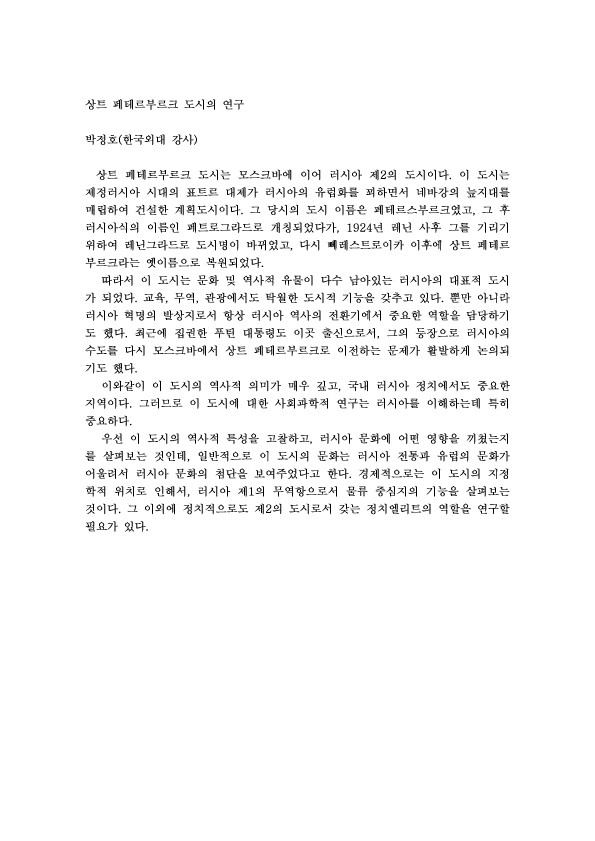 제34차 상트 페테르부르크 도시의 역사적 특징